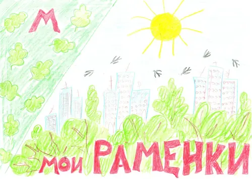 Я нарисовал вид на мой дом, в котором живу. Я люблю свой дом и двор. У меня есть много друзей, с которыми вместе играю на площадке. Рядом растет много деревьев и прилетают разные птицы, очень красивые.