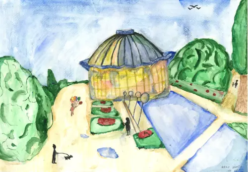 Я живу рядом с цирком на Проспекте Вернадского, мы часто ходим гулять к фонтанам, это лучшее место в нашем районе. Тут так красиво, много уточек и красивая сирень. Я написала эту работу в ИЗО студии «Старая школа».
