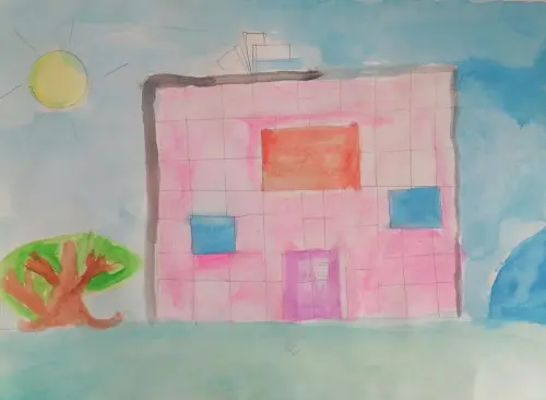 Нарисовал школу, потому что мне нравится туда ходить. Она у нас красивая. Там у меня много друзей. Ещё я хожу в школу на кружки и секции. У меня есть медали и грамоты.