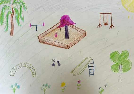 Меня зовут Варвара. Я живу на улице Винокурова. У нас во дворе есть детская площадка, где я всегда гуляю. У нас есть горка, качели, песочница, лавочки, тренажеры. Мне очень повезло.