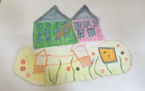 Это двор, в котором я люблю гулять. Он небольшой, но очень уютный. Площадка с горкой и песочницей. Когда я была маленькой, то очень любила возиться в песке. И сейчас я с друзьями люблю проводить там время, играть в разные игры.