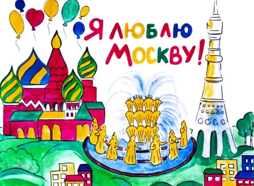 На этом рисунке изображены Собор Василия Блаженного, Фонтан Дружбы народов на ВДНХ и Останкинская Телебашня. Я очень люблю Москву!!! Я Александра Дегтярева, мне 6лет, я воспитанница ГБОУ, школы №89 имени А. П. Маресьева. В новом учебном году я пойду в школу в 1класс. Мне нравится заниматься творчеством, я люблю лепить из пластилина, делать поделки из природного материала и особенно рисовать. Я рисую природу, животных и красоту Москвы. Москва — это сердце нашей Родины России!!! На этом рисунке я нарисовала Собор Василия Блаженного, Фонтан Дружбы народов на ВДНХ и Останкинская Телебашня. Я очень люблю нашу Дорогую Москву и нашу Родину — Россию!!!