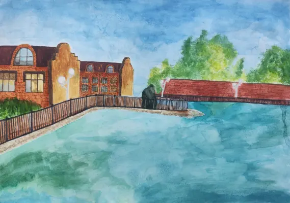 Я живу в очень красивом поселке, где есть набережная и пруд. Это наше любимое место для прогулок, купания в жаркие дни, а зимой мы катаемся на коньках. Все жители ценят и берут это место, украшают красивыми растениями и цветами, запускают рыбок. Мы с друзьями и семьёй любим здесь гулять. А также мне очень нравится архитектура наших домов. Я первый раз попробовала их нарисовать, получилось очень реалистично. На территории много металлических скульптур по сюжету произведения «Маленький принц». Около пруда есть несколько статуй. Я очень люблю свой поселок, мне нравится тут жить.Я живу в очень красивом поселке, где есть набережная и пруд. Это наше любимое место для прогулок, купания в жаркие дни, а зимой мы катаемся на коньках. Все жители ценят и берут это место, украшают красивыми растениями и цветами, запускают рыбок. Мы с друзьями и семьёй любим здесь гулять. А также мне очень нравится архитектура наших домов. Я первый раз попробовала их нарисовать, получилось очень реалистично. На территории много металлических скульптур по сюжету произведения «Маленький принц». Около пруда есть несколько статуй. Я очень люблю свой поселок, мне нравится тут жить.