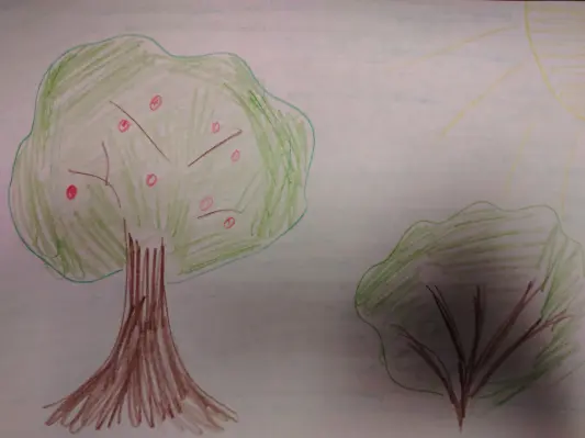В моем районе есть большой парк. В этом парке очень высокие и старые деревья. Я люблю гулять там летом с мамой и папой. В этом парке в жару прохладно.
