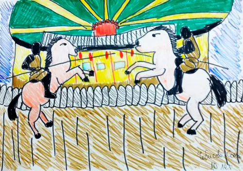 В районе Восточный города Москвы находятся аттракционы. В этом месте всегда много людей, особенно в выходные дни. Часто там проходят различные интересные мероприятия. Карусель изображена на рисунке.