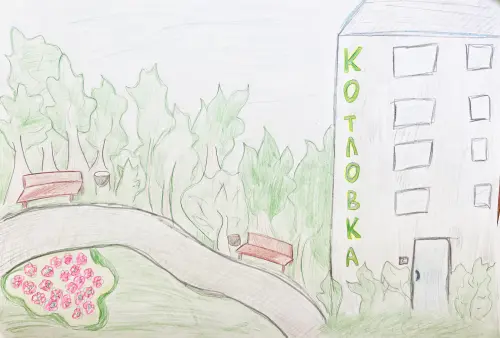 Работа посвящена любимому району Котловка. Этот район самый зеленый из всех, где я была, много деревьев, парков и зон для отдыха. Много детских площадок! Всегда есть где провести время с друзьями и погулять с сестрой.