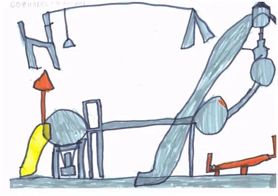 На изображении представлена детская площадка, на которой София очень любит проводить свое свободное время: лазить, играть с друзьями, бегать и прыгать.