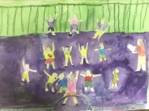 Для участия в конкурсе «Мой район» ученица ГБОУ ДО ЦРТДЮ «Гермес», Нуреева Елизавета Михайловна нарисовала работу под названием «Зарядка в Гермесе».
