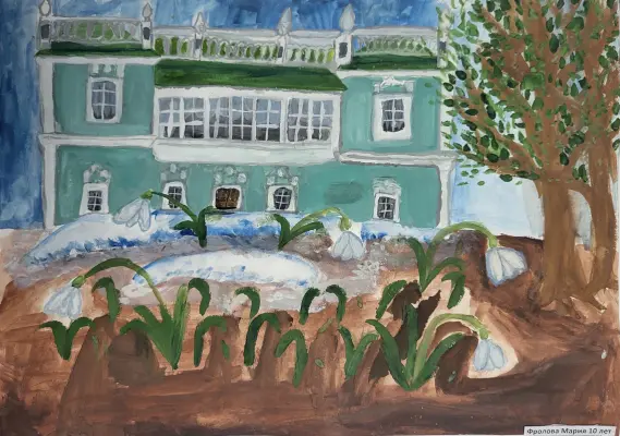 Весеннее солнце согрело землю, и это тепло проявилось в зелени деревьев и цветов. Фасад старинной усадьбы своим нежным цветом поддерживает свежее весеннее настроение.