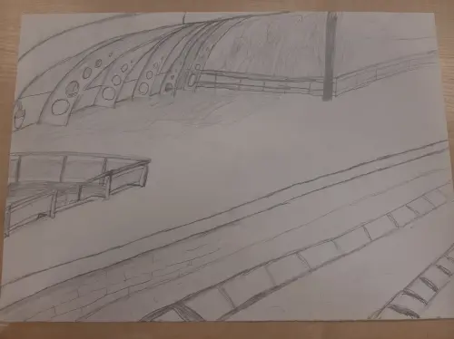 Я изобразил железнодорожную станцию Маленковская в черно-белом окрасе. За ней виднеется парк Сокольники. Каждый день по ней множество людей ездит на работу и загород.Я изобразил железнодорожную станцию Маленковская в черно-белом окрасе. За ней виднеется парк Сокольники. Каждый день по ней множество людей ездит на работу и загород.
