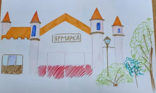 Район Новокосино в городе Москве достаточно новый район. В центре района расположена ярмарка. На ярмарке продаются продукты, а также находятся аттракционы. Вход на ярмарку изображен на рисунке.