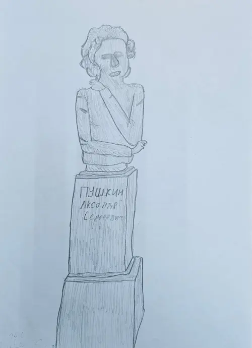 Сегодня нам с ребятами предложили нарисовать одно из мест нашего прекрасного города. Я вспомнила, как гуляла и видела памятник Александру Сергеевичу Пушкину.