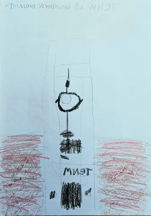 Сегодня мы с ребятами делали рисунки своих дворов и районов. Я живу в третьем микрорайоне, но часто гуляю в дендропарке. Оттуда видно красивую стелу.
