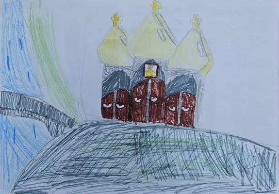 Сегодня нам с ребятами предложили нарисовать одно из мест нашего прекрасного города. Я вспомнил, как гулял с родителями и они показали мне этот храм. Он величественный изнутри.