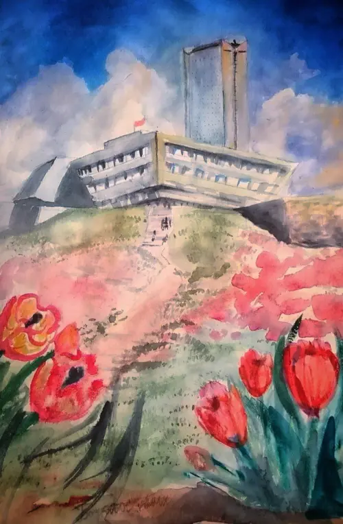 Сегодня нам с ребятами предложили нарисовать одно из мест нашего прекрасного города. Я часто гуляю мимо префектуры Зеленоградского административного округа города Москвы.