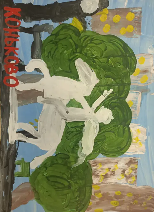 Кирилл нарисовал коня, памятник которому стоит в районе Коньково и является символом района. Конь изображается на флаге и на гербе района. Кирилл, как настоящий «Коньковец» представил себя на белом коне.Кирилл нарисовал коня, памятник которому стоит в районе Коньково и является символом района. Конь изображается на флаге и на гербе района. Кирилл, как настоящий «Коньковец» представил себя на белом коне.Кирилл нарисовал коня, памятник которому стоит в районе Коньково и является символом района. Конь изображается на флаге и на гербе района. Кирилл, как настоящий «Коньковец» представил себя на белом коне.