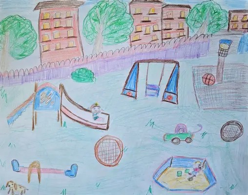 Меня зовут Максим, мне 6 лет. Я очень люблю гулять в своём дворе. Там много активностей, я люблю качаться на качелях, прыгать на батутах, играть в мяч. Строить из песка песочные замки. В нашем районе в каждом дворе есть свои детские площадки, поэтому мы с моим братом Павликом любим гулять. Ещё в нашем районе есть Грачевский парк, там живут белки, которых мы ходим кормить. Там можно послушать пение птиц. Мы с моим братом и родителями любим там кататься на велосипедах и самокатах. В нашем районе много зелени. Я люблю свой двор и район.