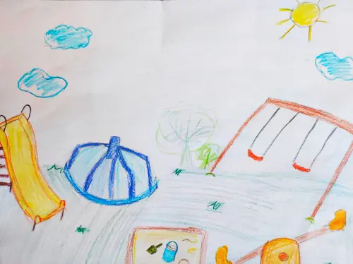 Меня зовут Лера, мне 6 лет. Я очень люблю свой район. Особенно мне нравятся детские площадки. У нас во дворе много всего интересного. Можно покачаться на качелях, покататься с горки и весело провести время с друзьями!