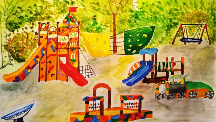 Я каждый день, идя в школу, прохожу мимо этой площадки. Я считаю, что это самая красивая площадка в нашем районе. Она яркая и подходит для детей разных возрастов.