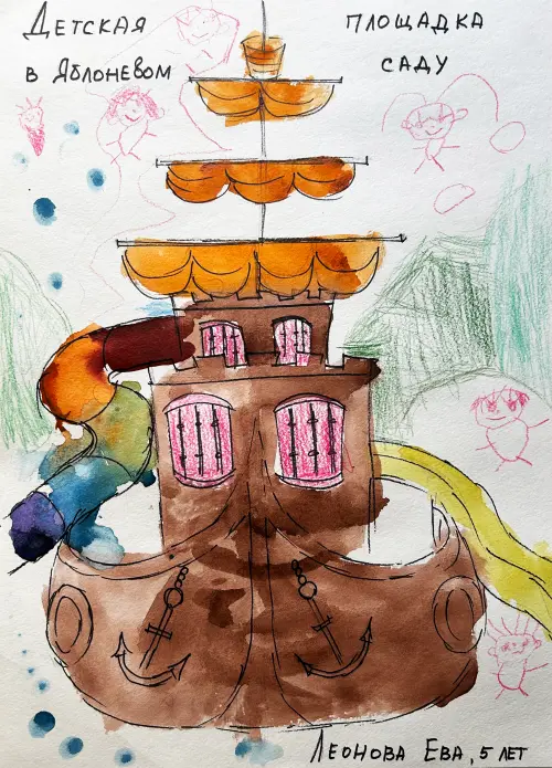 Недалеко от нашего дома есть замечательная детская площадка в виде корабля, которая является центром притяжения детей из ближайших домов.Недалеко от нашего дома есть замечательная детская площадка в виде корабля, которая является центром притяжения детей из ближайших домов. Дети разных возрастов проводят весело свое время на этой площадке.