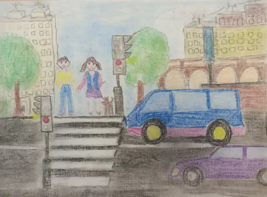 Денис любит свой город и часто гуляет со своей сестрой Вероникой и любимым питомцем. На рисунке Денис показал, как ребята остановились на красный сигнал светофора переходя дорогуДенис любит свой город и часто гуляет со своей сестрой Вероникой и любимым питомцем. На рисунке Денис показал, как ребята остановились на красный сигнал светофора переходя дорогуДенис любит свой город и часто гуляет со своей сестрой Вероникой и любимым питомцем. На рисунке Денис показал, как ребята остановились на красный сигнал светофора переходя дорогу