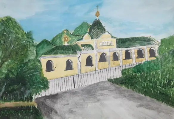 Работа выполнена гуашью и акварелью.Уютная маленькая церковь на берегу Святого Озера.Работа выполнена гуашью и акварелью.Уютная маленькая церковь на берегу Святого Озера.Мне хотелось ее нарисовать и передать ее красоту, чтобы как можно больше людей приходило сюда.