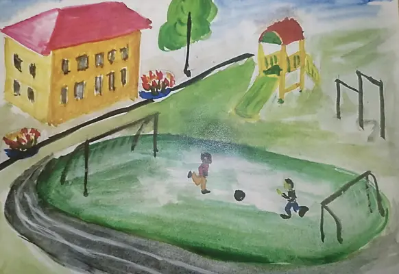 Я очень люблю играть в футбол со своими друзьями в нашем дворе. Однажды, когда мы с ребятами играли в футбол, к нам подошли мальчики из соседнего двора и предложили нам устроить соревнования по футболу во дворе.