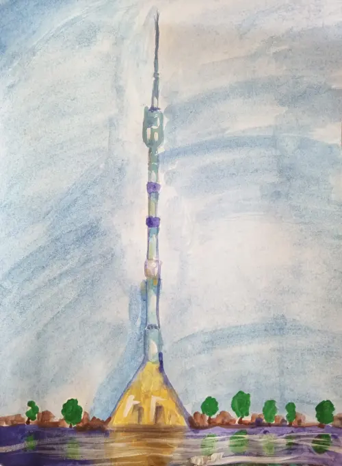 С нашего района видно останкинскую башню, она высочайшее сооружение в Европе и России, мне нравится ее вид и я решил ее нарисоватьС нашего района видно останкинскую башню, она высочайшее сооружение в Европе и России, мне нравится ее вид и я решил ее нарисовать. Мечтаю побывать там на экскурсии.