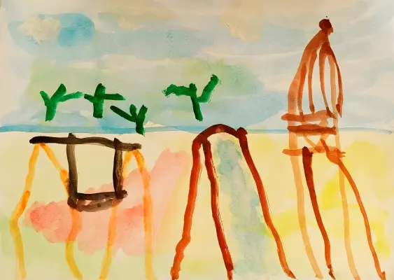 София нарисовала свою любимую детскую площадку, которая располагается в сквере возле Грачевского парка. Почти каждый выходной она приходит сюда поиграть вместе с родителями и братиком. София любит качаться на качелях, а особенно залазить на верх космической ракеты. Она мечтает, что сможет летать в космос когда вырастет.София нарисовала свою любимую детскую площадку, которая располагается в сквере возле Грачевского парка. Почти каждый выходной она приходит сюда поиграть вместе с родителями и братиком. София любит качаться на качелях, а особенно залазить на верх космической ракеты. Она мечтает, что сможет летать в космос когда вырастет.
