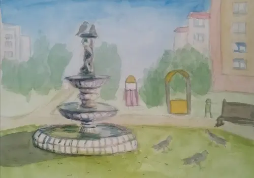 За моим домом, примерно 7 лет назад, построили очень красивый декоративный фонтан. Фонтан стал украшением детской площадки. Шум от струй воды дарит спокойствие и расслабление.