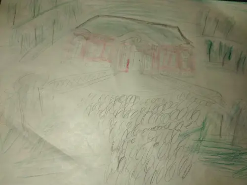 Мне очень нравится гулять по усадьбе Кусково. Там очень красиво. В усадьбе снимались разные исторические фильмы. Я нарисовал одно из многочисленных зданий на территории.