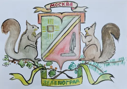 Решила изобразить герб Зеленограда потому, что он отражает всю красоту нашего города. Поэтому сложно было выделить какой-то один район или двор. Очень люблю этот город.
