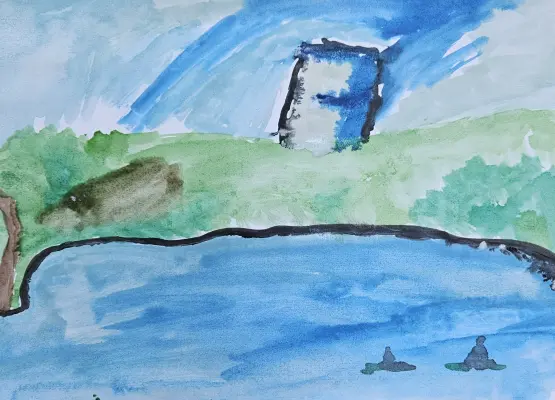 Сегодня нам с ребятами в лагере предложили нарисовать одно из мест нашего города. Я решил нарисовать Городской пруд потому, что мне очень нравится там гулять с родителями.
