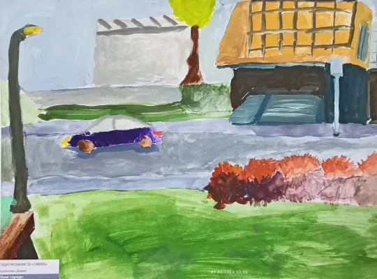 Сегодня нам с ребятами в лагере предложили нарисовать одно из мест нашего города. Я решил нарисовать дорогу нашего города, потому что мне очень нравится гулять с родителями по ним.
