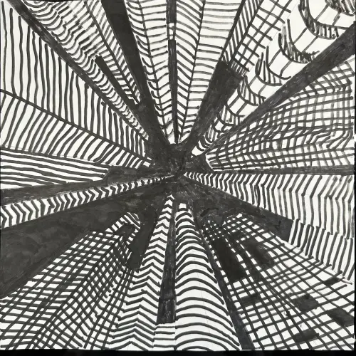 На этом рисунке он изобразил свое впечатление маленького мальчика, задравшего голову вверх и глядящего на стремящиеся в небеса здания.