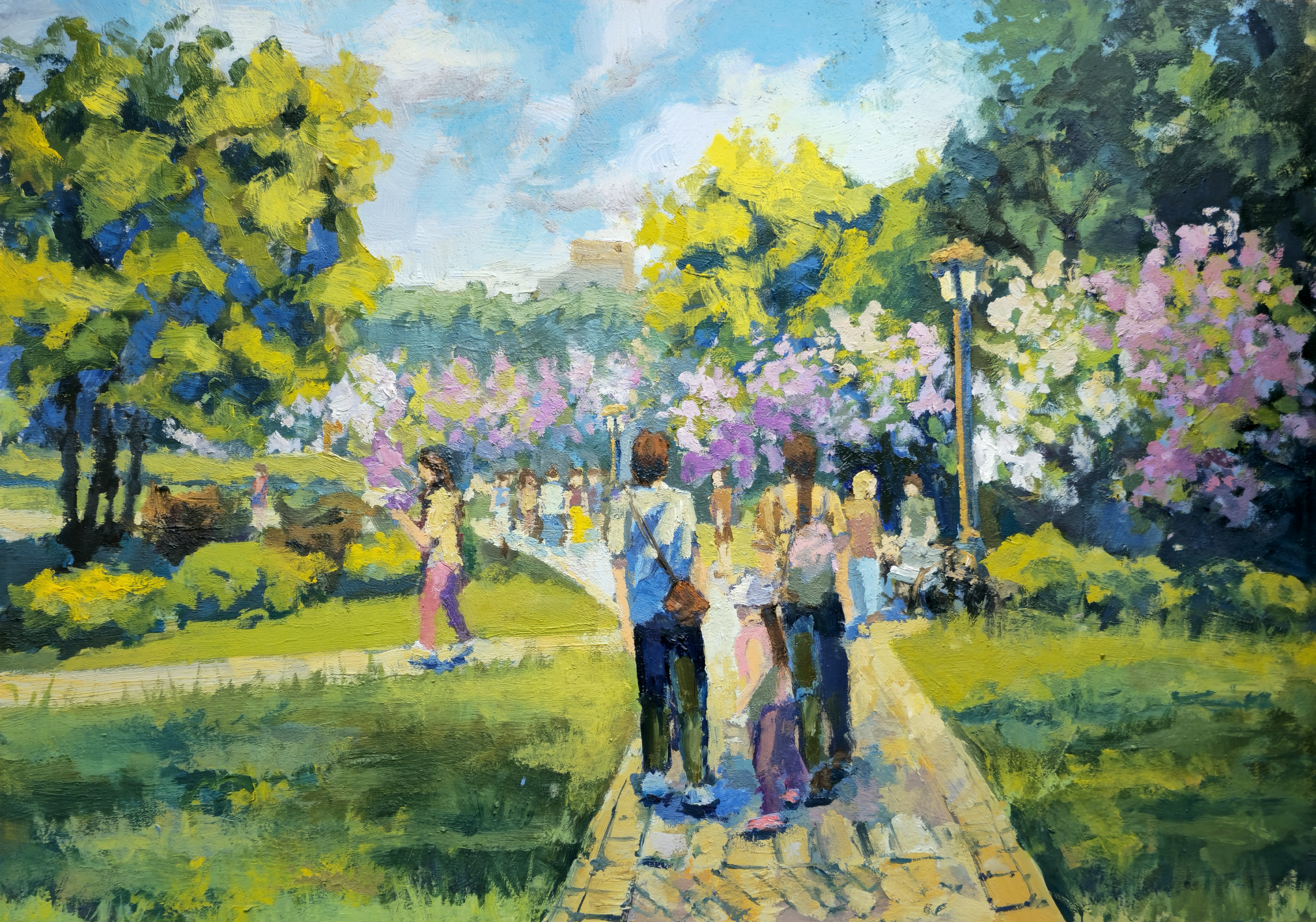 На картине изображён Сиреневый сад, находящийся на востоке города Москвы. Солнечный летний день в этом саду выглядит действительно волшебно благодаря обилию распустившихся цветов сирени. Именно поэтому я решила нарисовать это место. Работа выполнена маслом на формате А3.На картине изображён Сиреневый сад, находящийся на востоке города Москвы. Солнечный летний день в этом саду выглядит действительно волшебно благодаря обилию распустившихся цветов сирени. Именно поэтому я решила нарисовать это место. Работа выполнена маслом на формате А3.