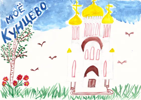 Я очень рад, что живу в районе Кунцево. На своем рисунке изобразил храм Иоанна Русского. Мне нравится там бывать, на территории храма живут белочки. Рядом с храмом памятник. Очень памятное место в нашем районе!