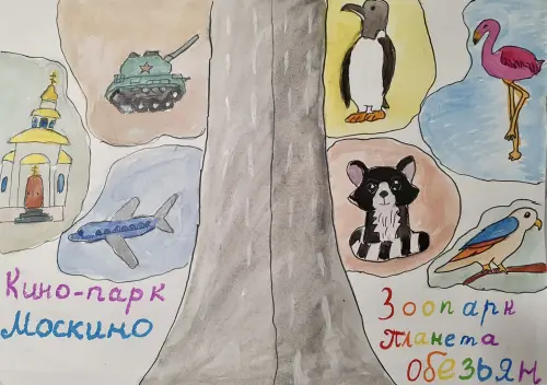 Всей семьей мы очень любим проводить время в зоопарке «Планета обезьян», где мы наблюдаем за разными животными, их особенностями и повадками. А совсем недавно мне удалось побывать в Кино- парк Москино, где я смогла увидеть военную технику прошлых лет, настоящие места для съемок фильмов и кино, настоящий самолет.