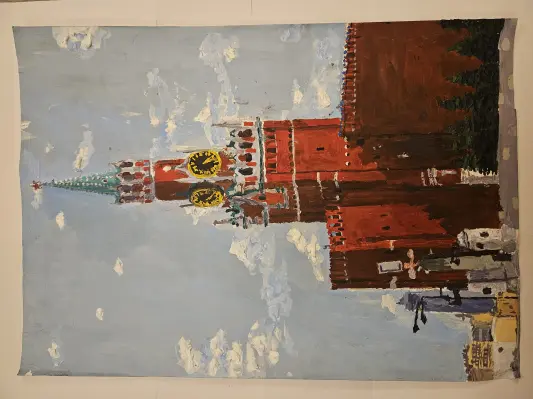 При создании работы я вдохновилась одной из самой популярной достопримечательности нашей столицы, которая находиться на Красной Площади — это Спасская башня. Мне очень нравятся прогулки по центру нашего города.