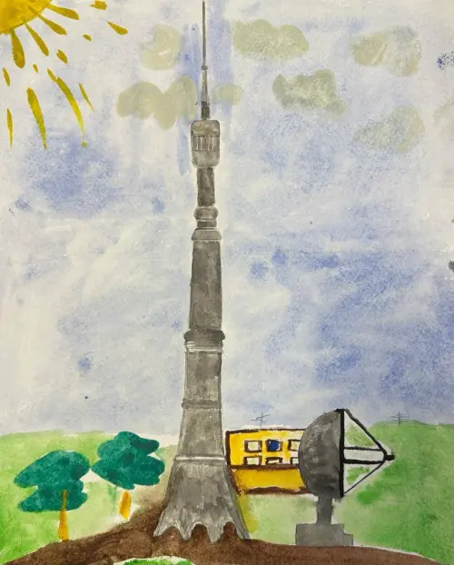 Я была на смотровой площадке на Останкинской телебашне. Восторг! Мне захотелось её нарисовать! Я думаю, что у меня здорово получилось, решила послать рисунок на конкурсЯ была на смотровой площадке на Останкинской телебашне. Восторг! Мне захотелось её нарисовать! Я думаю, что у меня здорово получилось, решила послать рисунок на конкурс