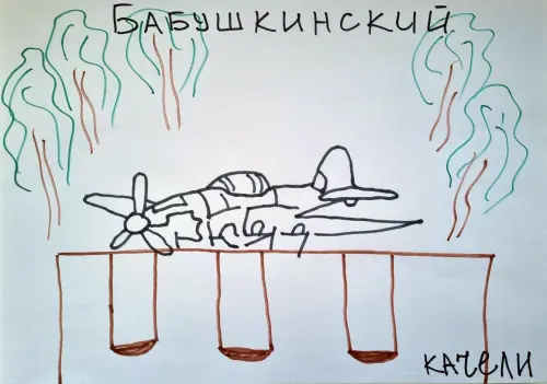 В моем районе есть высокие и большие качели, на который мне очень нравится качаться, когда мама забирает меня из садика домой. Каждый раз мы проходим мимо этого места и я с радостью раскачиваюсь выше и выше к небу