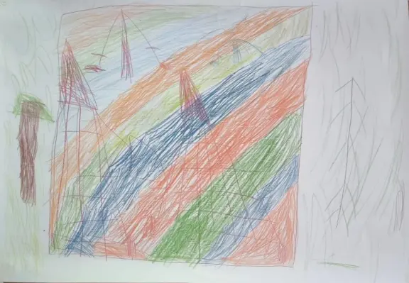 На рисунке я нарисовала детскую площадку которая находится в Гончаровском парке. Она очень нравится мне и моим друзьям. Там можно весело и интересно провести время. Я ее очень люблю!