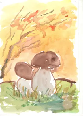 Рядом с нашим районом находится всем известный Главный Ботанический сад. Это живой музей для всех, кто интересуется жизнью растений, где собраны растения со всего мира. Я люблю рисовать природу. И, гуляя по Ботаническому сады, наткнулась на этот гриб.