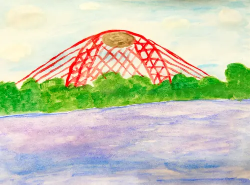 живописный мост в серебряном бору, очень впечатляет. Хотелось бы побывать в самом шаре, думаю вид на Москву неописуемый. Работа выполнена акварелью