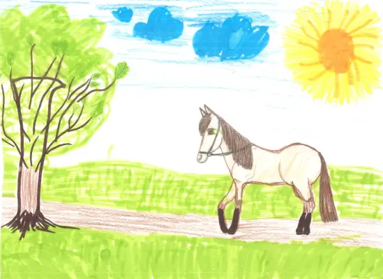 Мы часто с родителями посещаем Лианозовский парк, который расположен в соседнем районе. Там у меня появился друг. Лошадка по имени Пальма. Я всегда очень жду наших с ней встреч. Наша дружба вдохновила меня ее нарисовать. Теперь когда я смотрю на рисунок мне становится очень приятно вспоминать Пальму.