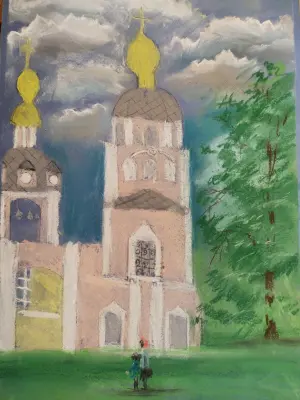 Любимый храм моей семьи. Работа написана масляной пастелью.Территория Усадьбы " Свиблово", которая находится по адресу: г. Москва, Лазоревый проезд 15, строение 3.