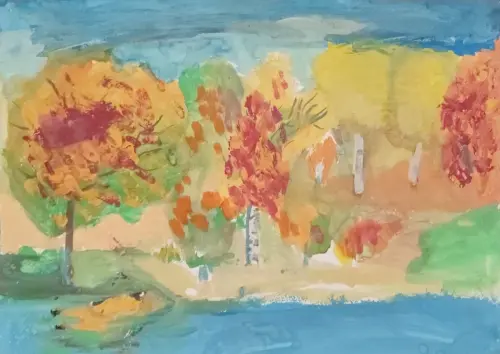 В нашем районе есть Джамгаровский парк и это очень красивое место, там живут белочки, а в пруду очень много разной рыбы, постоянно сидят рыбаки, особенно красиво там осенью, что я и попытался изобразить.