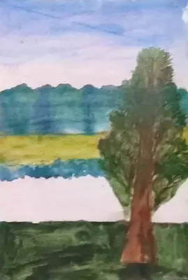 В этом году в парке Торфянка я принимала участие в фестивале «Лето в Москве выходи на улицу» я там танцевала со своим коллективом «Карусель» и мне очень понравилась природа и пруд, огари, белочки, рыбы, поэтому я нарисовала Торфянку как я её вижу.