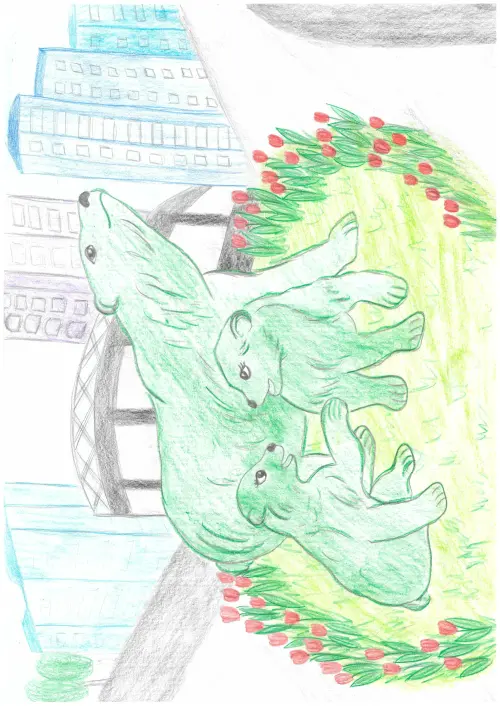 Я родилась и живу в своем любимом Южном Медведково. У нас на улице Заповедной стояли зеленые мишки, мне они очень нравились, это был символ нашего района, и я решила их нарисовать.