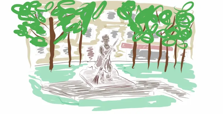 На фоне мощного, старинного акведука в Ростокино стоит памятник. Не герою войны, не писателю, не политику, а простому дворнику. Этот памятник мне кажется интересным, поэтому я изобразил в своей работе.На фоне мощного, старинного акведука в Ростокино стоит памятник. Не герою войны, не писателю, не политику, а простому дворнику. Этот памятник мне кажется интересным, поэтому я изобразил в своей работе.